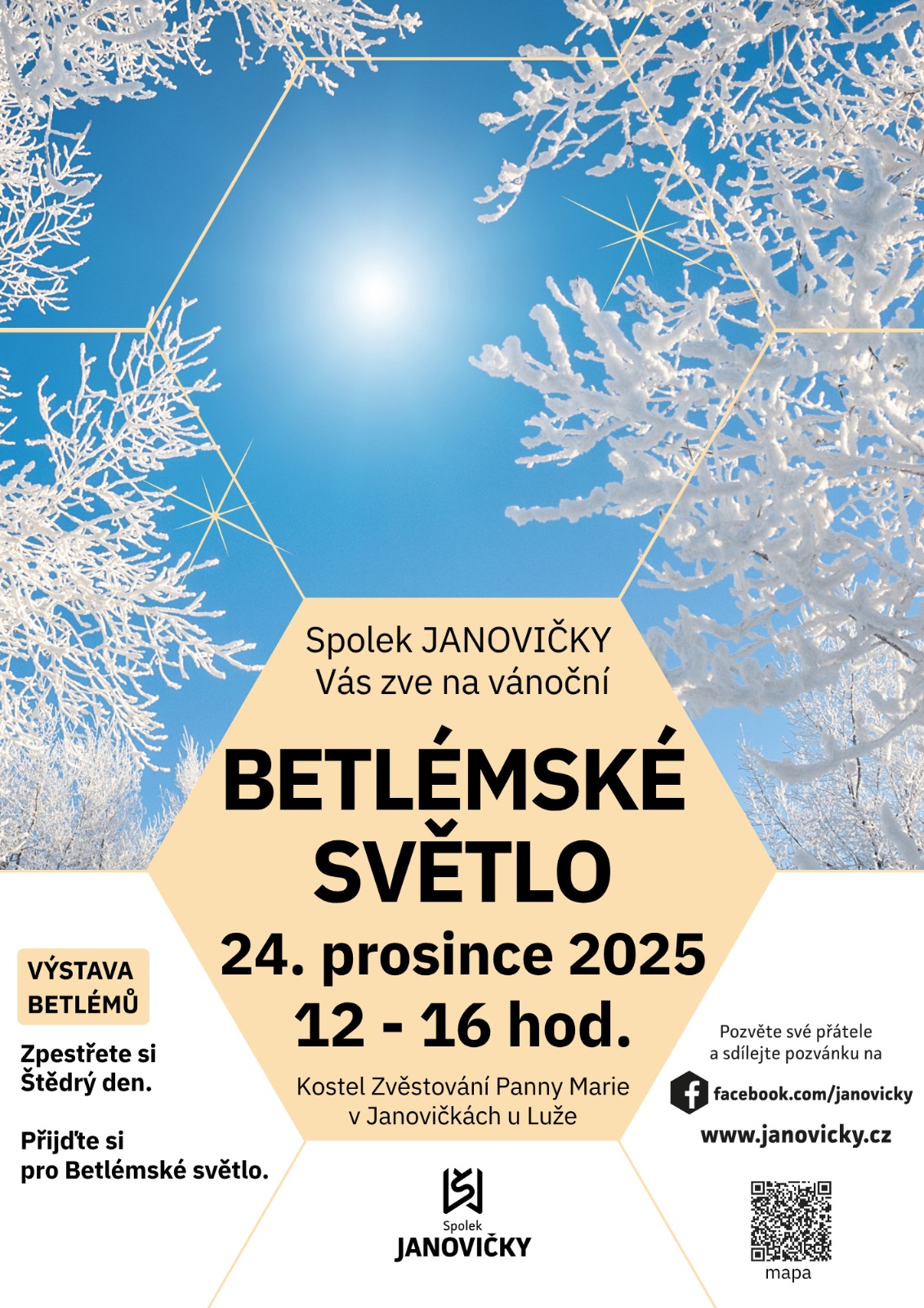 Srdečně zveme k návštěvě kostela v Janovičkách během štědrého dne, kdy bude kostel otevřen